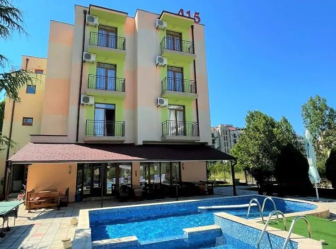Хотел 415 в Слънчев бряг е разположен на разстояние от 1 км от курорта и се състои от 30 стаи с модерни удобства. Хотелът предлага ресторант и място за багаж, като е на средно разстояние от Денс Клуб Революшън.
